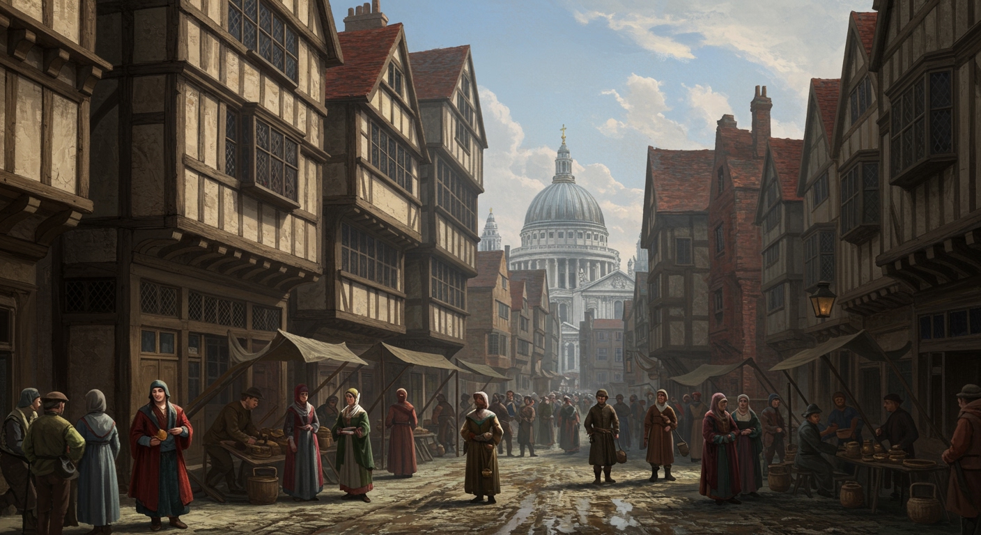 - Guilds and Commerce: The city’s economy was largely controlled by powerful merchant guilds, which ran the city and regulated trades like blacksmithing, weaving, and baking. Many street names, such as Threadneedle Street and Bread Street, reflect the trades once practiced there.